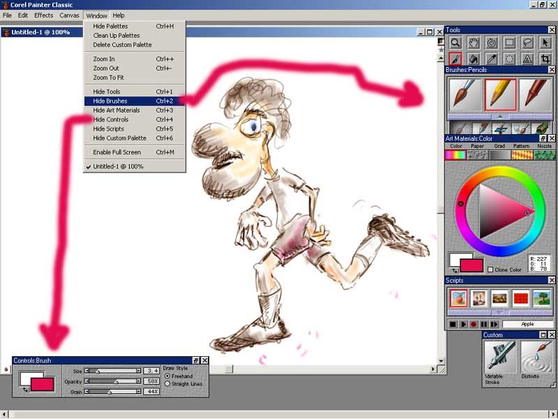Hola, alguien sabe dónde están los brush controls (donde se pueden escoger los distintos tipos de puntas de brocha) en el procreate Painter classic, teóricamente debería salir en Control +7, pero no me sale, ¿Cuál es el método manual de llegar a ellos? Estuve mirando en todos los menús (empezando por el de Windows), pero no encontré nada, la verdad no hay demasiadas opciones en ninguno de los menús, poco tiene que ver este programa con nuestro viejo Adobe Photoshop, a ver si alguien me puede echar una mano, gracias por adelantado. Saludos.
