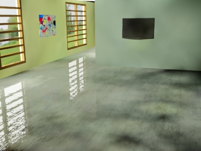 Aquí les dejo un render del problema. Ah sabrían decirme que más podría añadir para mejorar la iluminación y ganar en realismo? Y por qué el bitmap del jardín se ve tan mal? Es una fotografía con resolución una de 1024 por 768 y otra de 2000 por 1500 píxel. Un saludo y gracias.
