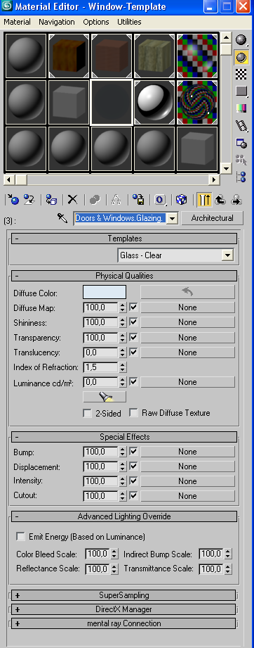 Te envío ahora la captura del material-cristal de la ventana. A ver qué me puedes comentar para acabar de darle más realidad.