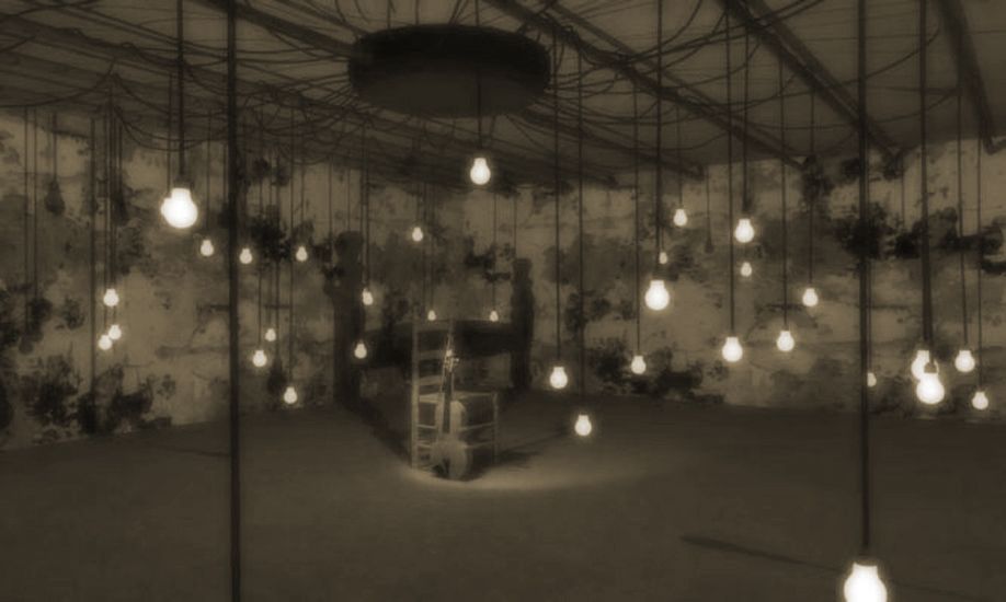 Además hay un par de sombras en el suelo que no corresponden están a los lodos de la silla, ¿las ves? Al perecer son sombras de las lámparas que cuelgan, coincido con las sombras de la silla, de hecho, con un poco de imaginación (tengo bastante) la sombra de la izquierda parece la sombra de una persona con los brazos en la cintura.