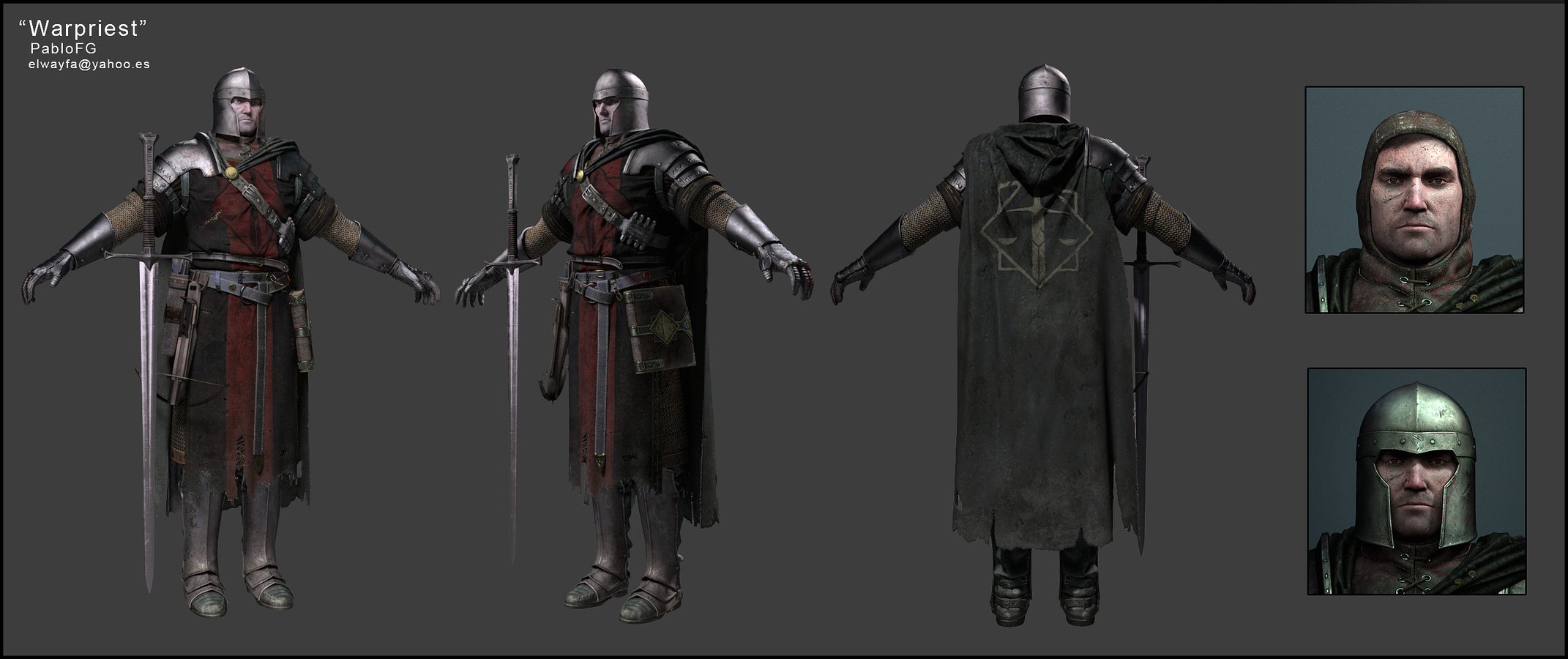 creyeron que no lo iba a terminar? Jah, usuarios de poca fe, . Nada, el tipo esta terminado desde hace rato, aburriéndose en mí disco duro, y no lo había presentado porque quería hacerle una ilustración épica, con una postura épica y escenario épico etc, pero me conozco, tengo muchas cosas que hacer, y va a tomar forever. Así que me conformo con una nada épica postura y un par de renders, la idea original fue hacer una mezcla entre el típico clérigo de fantasía donde estilizado y un cruzado parcamente realista.