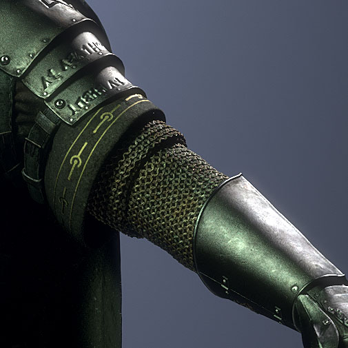 Hulk, la cota de mallas es una de las cosas con las que me quede contento, funciona bastante bien. Está basada en un displacement, así que, incluso viéndola cerca funciona, se ven las anillas. Ahora, a la hora del render para reducir tiempos configure el Shader para que haga una aproximación, sino se tira la de dios en dibujarla.
