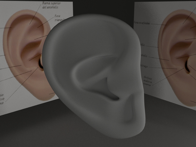 Estoy en el tema de modelado de un personaje, hoy mismo le he enviado la oreja, que posteriormente unire al cuerpo.