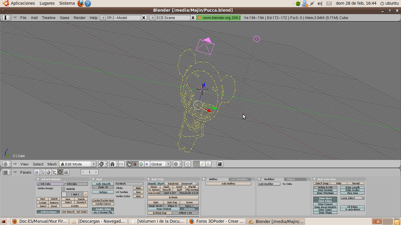 Tengo entendido que para hacer un personaje, primero tienes que hacerle los vértices, y tras esto añadirle profundidad, pues bueno chicos, esto último no consigo hacerlo, he mirado un montón de tutoriales pero no son más que muestras, y no sé cómo hacerlo, os adjunto unas imágenes para que veáis como voy. Saludos.
