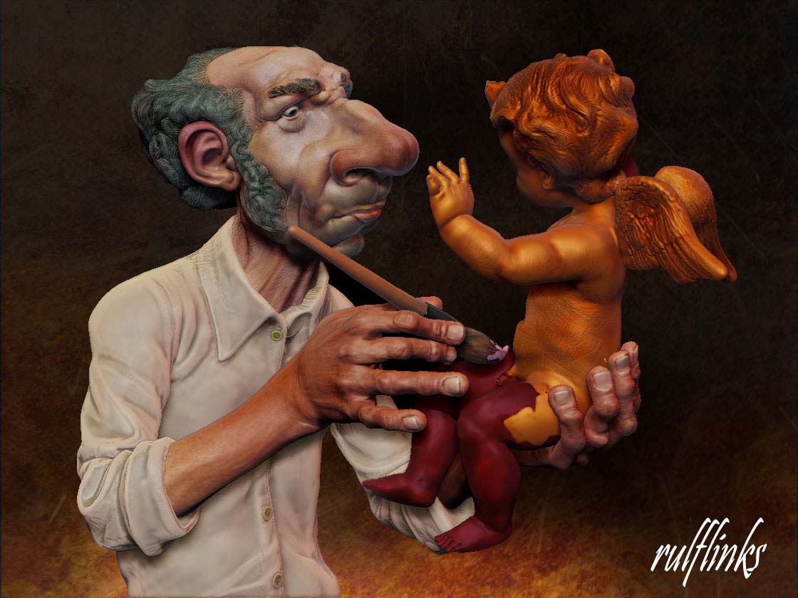 Muchas gracias por los comentarios. Es 3d no 2d, la apariencia de 2d me gustaba, me gusta que parezca una ilustración. La imagen no ha sido intencionada, sino que he ido probando hasta que me gustaba, ha sido probar cómo hacer un render por capas con ZBrush y Adobe Photoshop.