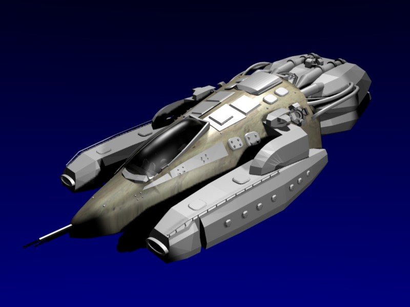 El programa que uso es Blender y lo renderice en el mismo programa, lo que pretendía mostrar es un tanque futurista en el agua.