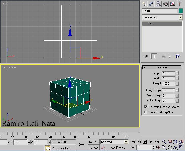 1.- Cre un cubo de 100 unidades, es decir en length 100; width 100 y eigth 100, así también de 3 segmentos en legth, width y eigth.