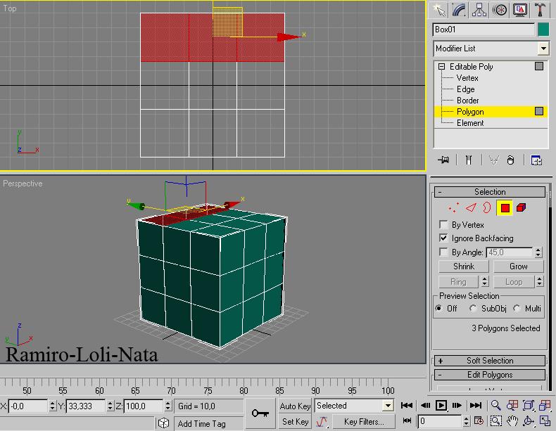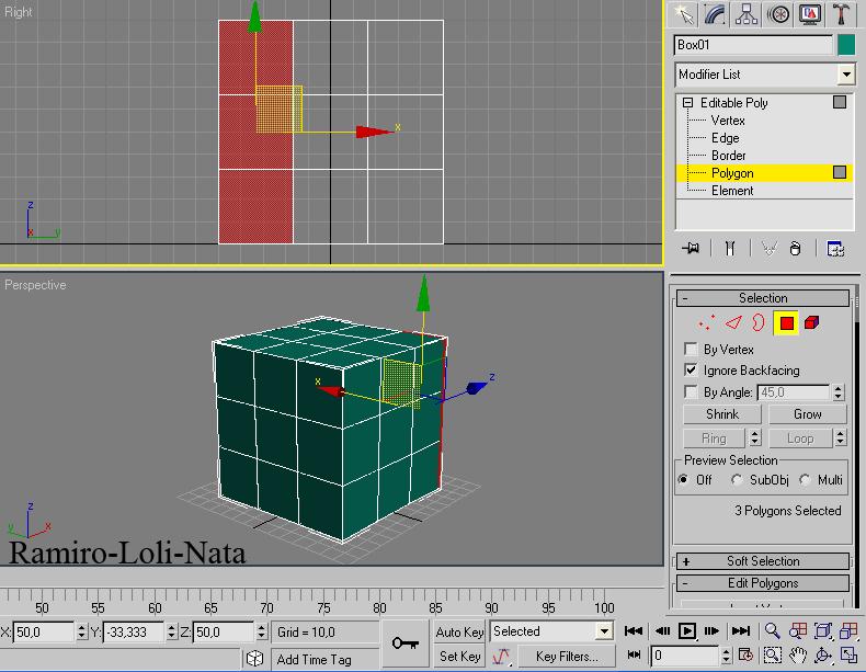 3.- Una vez convertido el cubo en Editable Poly, vaya hasta la persiana de la derecha y seleccione polygon.