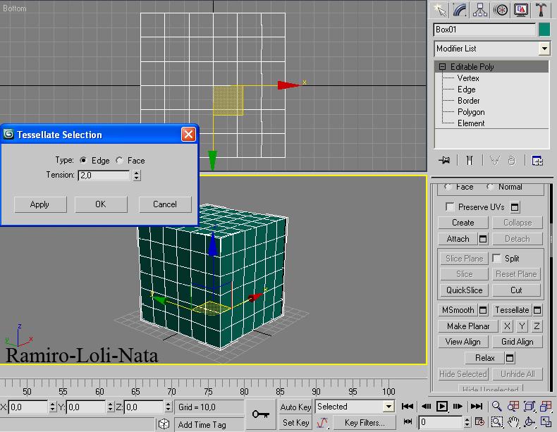10. Una vez concluido todo este proceso, vaya hasta la persiana edit geometry y apreté en Tessellate, seleccione edge y ponga un valor en tensión de dos y acepte con ok, realice este mismo paso una vez más con la misma tensión de dos y con selección en edge.