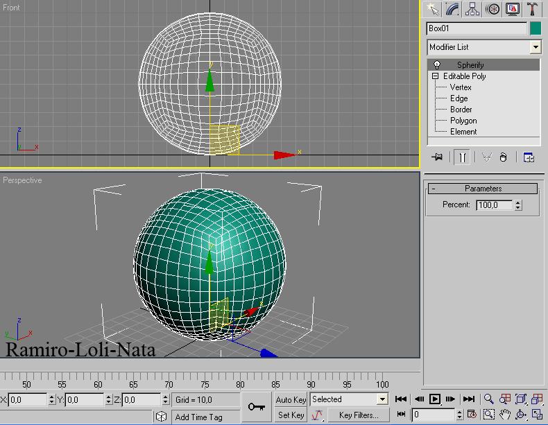 11.- A continuación vaya a la persiana modifier list y seleccione spherify, no cambie el valor Percent de 100.