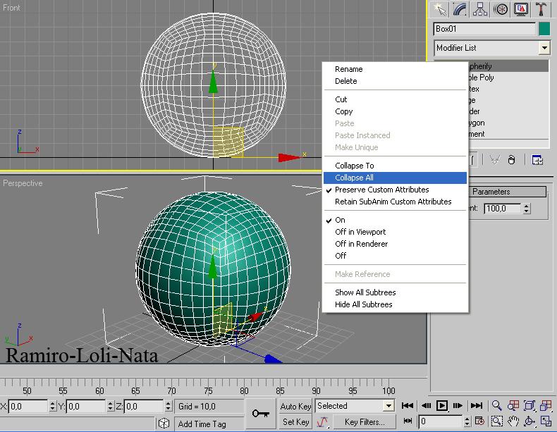 12.- Ahora pulse sobre spherify en la persiana derecha con mouse derecho y seleccione collapse all.