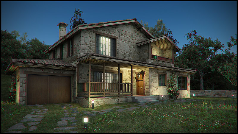 Gracias por opinarmortal kombat a la primera imagen te refieres a la nocturna? Esa no lleva efectos de Lens Flare. Los interiores los estoy puliendo un poco más, sobre todo por el tema de ambientación, que quede acorde con el estilo general de la casa.