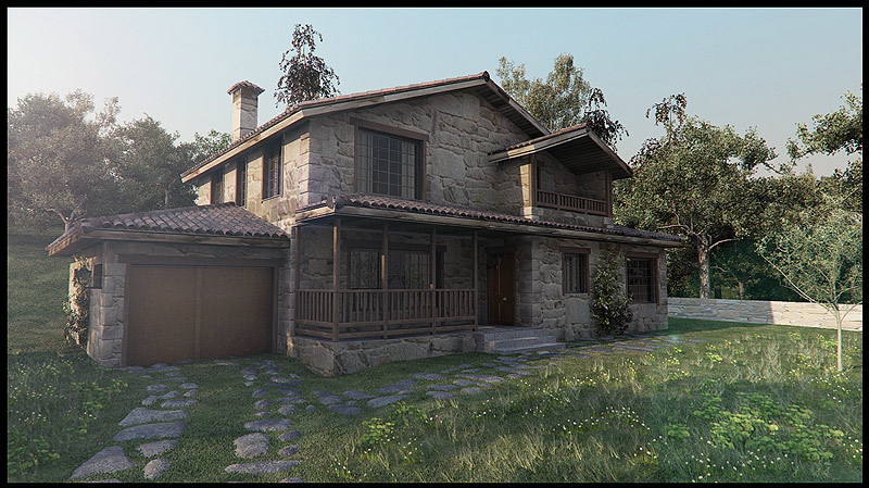 Felicitaciones Acortes, aunque si te digo la verdad no me gusta nada la imagen 1ª la veo demasiado render diría yo y además la corrección de lente que le has aplicado tampoco le favorece según mi punto de vista, creo que la segunda imagen es infinitamente mejor que la primera, los colores todos más acordes, en este segundo render aparte de estar de p. M, quizá yo intentaría mejorar algo el jardín ese que creo que es lo que menos da la talla, yo creo que alguna planta a muy primer plano con un Dof, ganaría muy mucho, en fin, simplemente una opinión, pero que sepas que el trabajo no deja de ser estupendo, de nuevo felicidades.