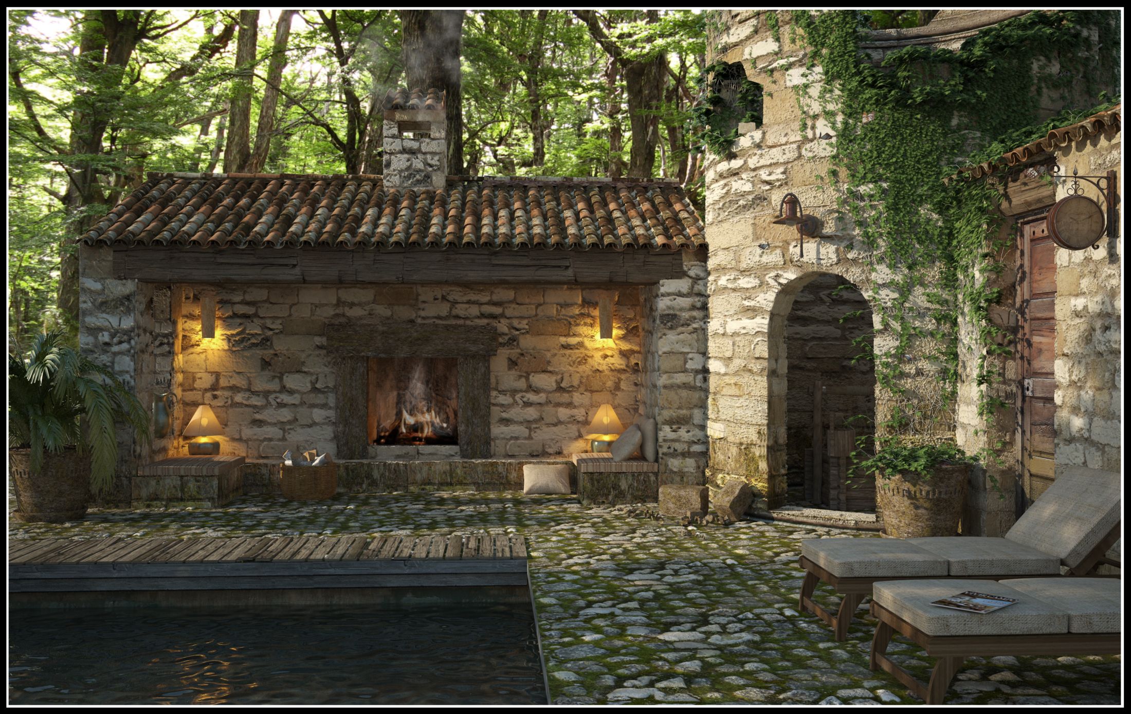 Hola de nuevo, os presento otra escena que paso por el concurso de lightrenderontour. Se trata de un lugar para tomarse un café o para hacrse una salchichas en la lumbre, eso sí nada de baño que no he limpiado la piscina.