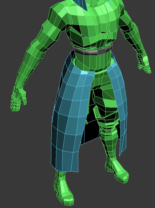 3. La última pregunta y la que podría sustituir a todas las demás: ¿cómo harías tú una capa o este faldón en un personaje Low poly, suponiendo que deseas que el interior de la capa también renderice y que además sea fácilmente animable como ropa?