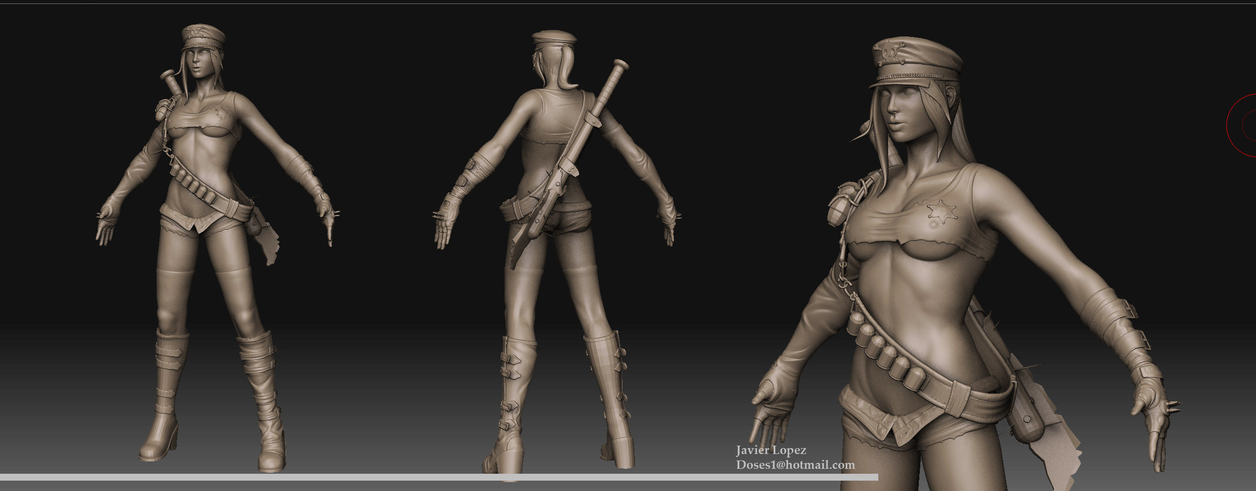 La idea es hacer el personaje en Low completo, representa a una superviviente en una era pues apocalíptica, lo típico solo sobreviven los más fuertes.