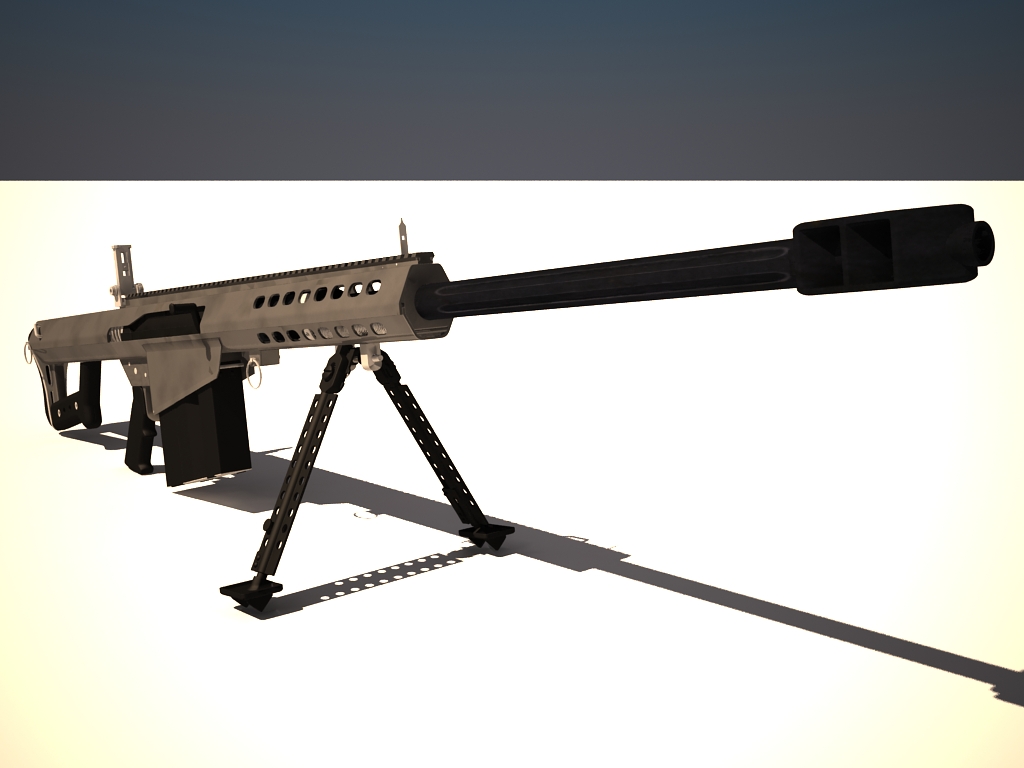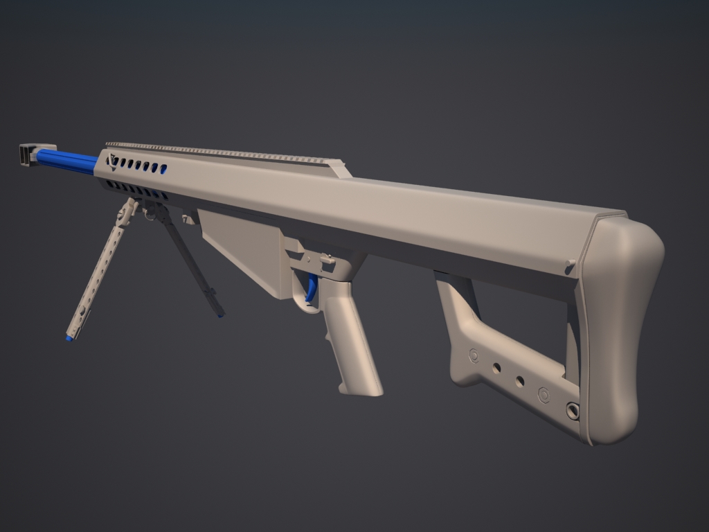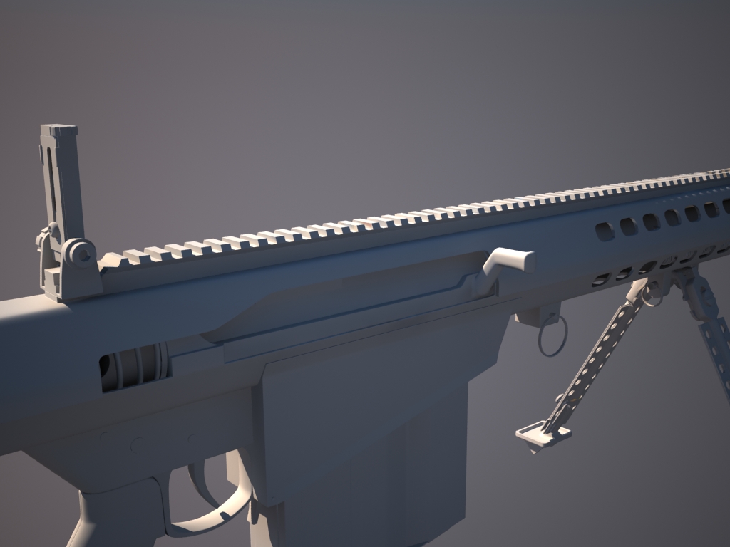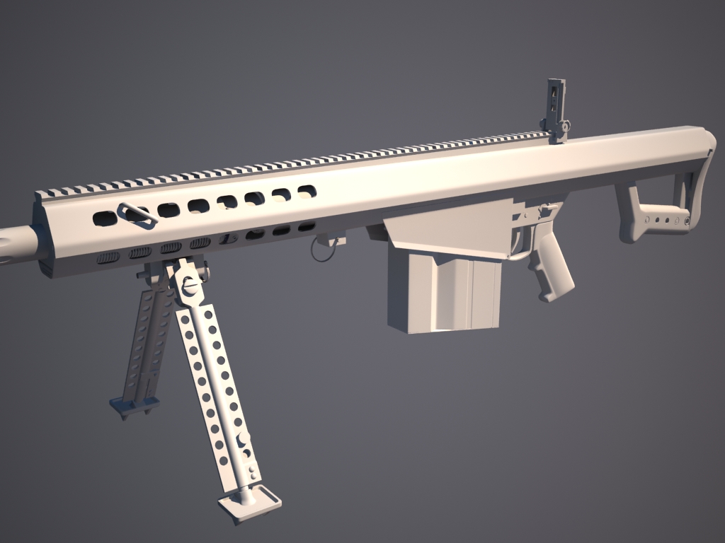 Mira tu por dónde que hace unos días me dió por modelar la barrett del 50, pero como lo quería hacer en CAD y no encontré muchas referencias en cuanto a medidas se refiere lo dejé. No sé si ya te has pasado por la página oficial de barrett, pero hay pdf del despiece del rifle. Un saludo.