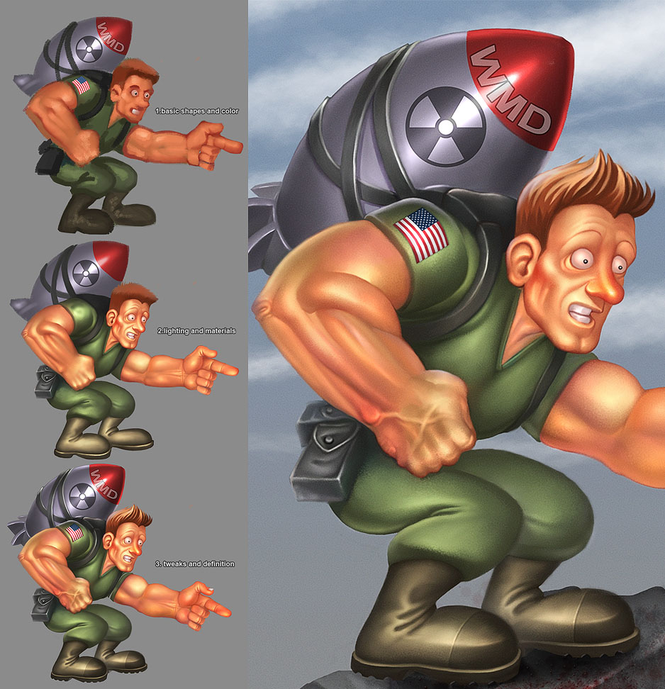 Pero si que en cgtalk aceptan ilustraciones de carácter político, así que, quizás la culpa es mía por no tener clase para ilustrar la idea, es que ya me han dicho que soy muy torpe.
