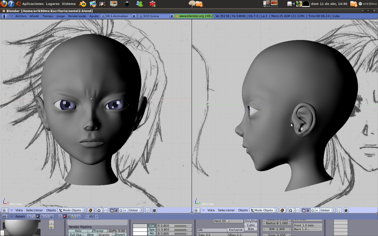 Después le trate de perfeccionar las facciones faciales para que se pareciera al boceto.