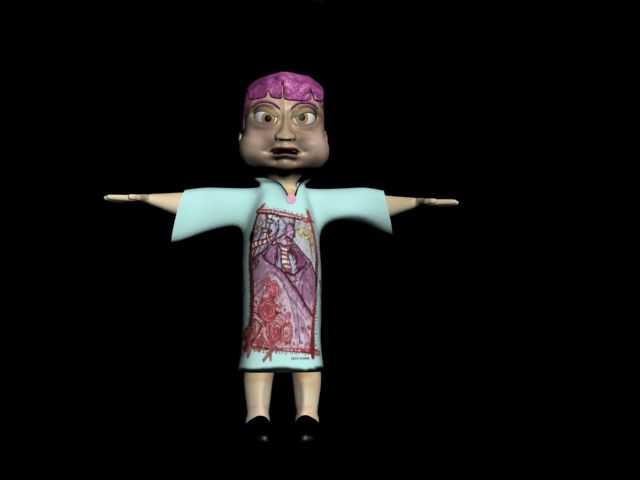 El modelado sin ver un wire es difícil de decir. De todas formas, el resultado es algo grotesco (lo cual no quiere decir que esté mal, más bien tiene cara de japonés estreñido malahostia y si es lo que buscabais, lo habéis conseguido). En el texturizado, ya dice IkerClon que hay problemas con las mangas, aunque si se ve de lejos como en el otro mensaje no se percibe.