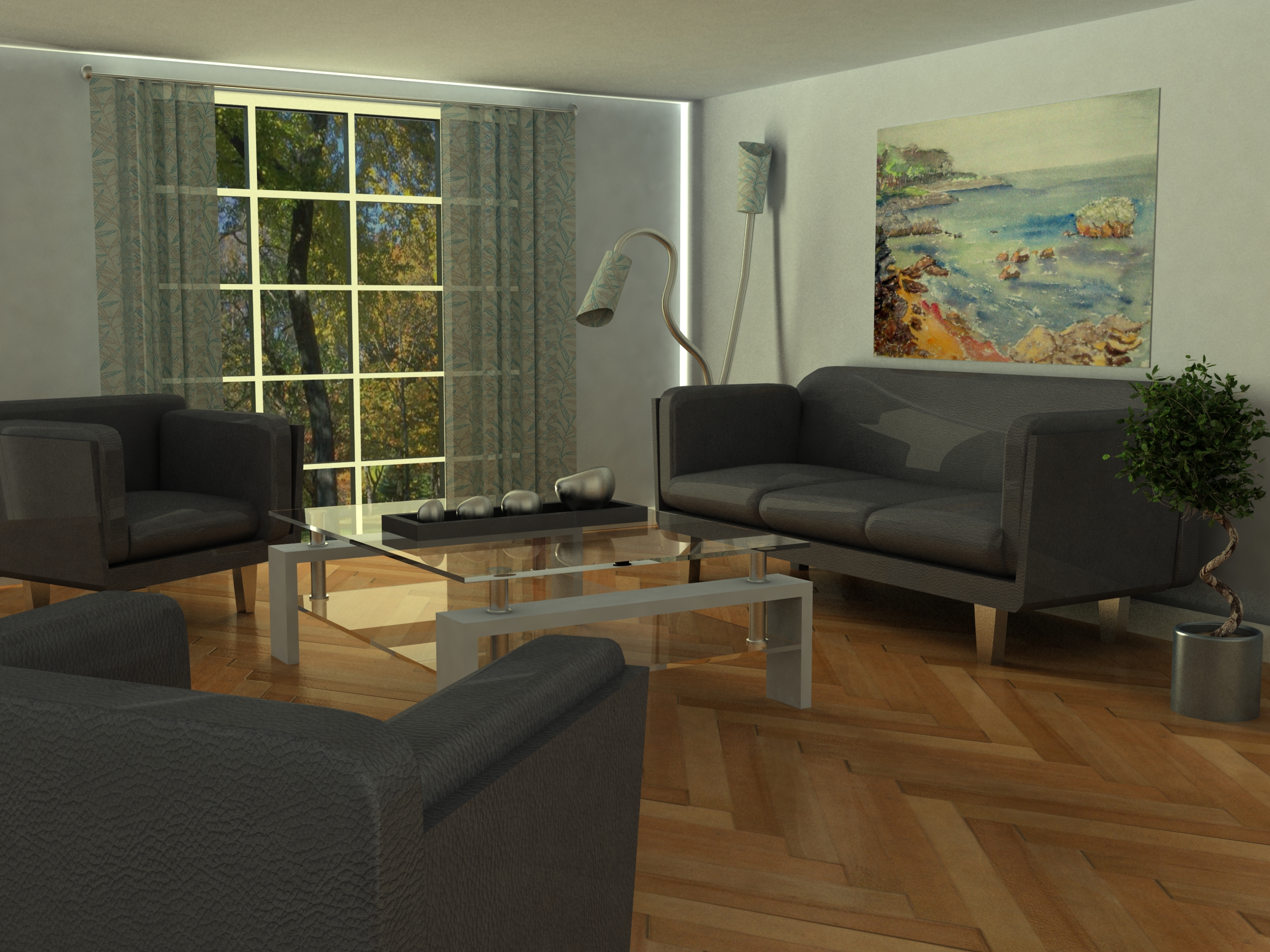 hola histerika estas iluminando horriblemente mal, bájale la luz que está detrás de la ventana y deja pasar la luz global por el vidrio con un buen material, que motor estas usando? Fíjate también que esté bien cerrados las esquinas, tal vez fugue luz donde mencionas, desde ya se está quemando por la luz elevada. Saludos desde bs as.