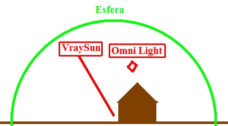 Yo lo que hago al iluminar con la omni únicamente a la esfera que hace de cielo y excluyendo de su luz todo lo demás. Eso si no logras iluminar la escena de forma global con un cielo auto iluminado, que luego puedes apagar el Vray Sky o el environtment, así, no tendrías tampoco que excluir la esfera de que se vea afectada por la GI, como si pasa con el otro método.