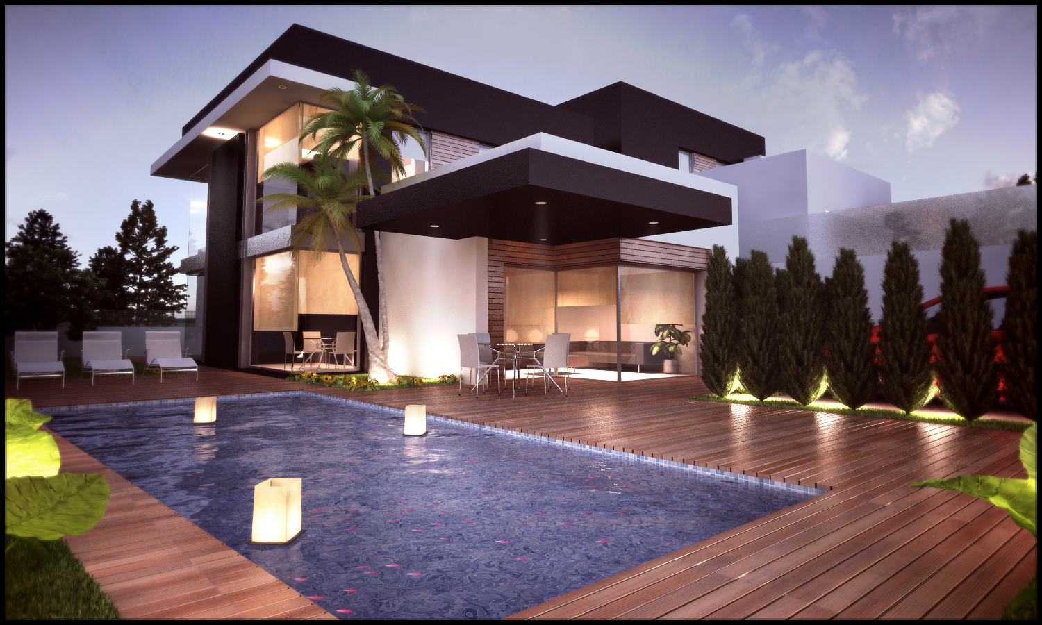 Vaya me gustó el modelado y el estilo de diseño en ambientación igual esta completo. Solo que la noche las luces de ven muy fuertes en la última imagen.