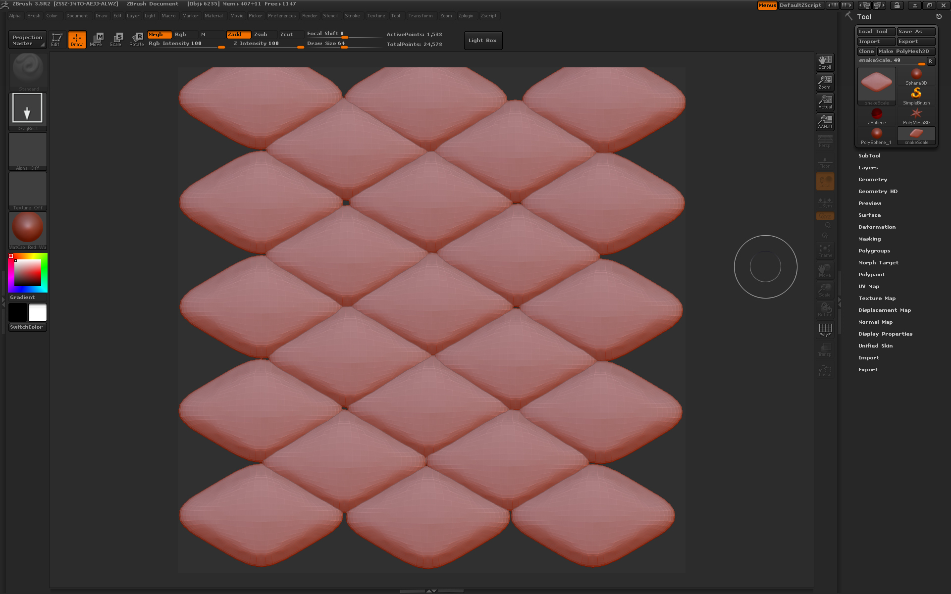 Para ello he creado una tool con forma de escama de serpiente y la he repetido muchas veces para hacer la piel y después sacar el alfa.