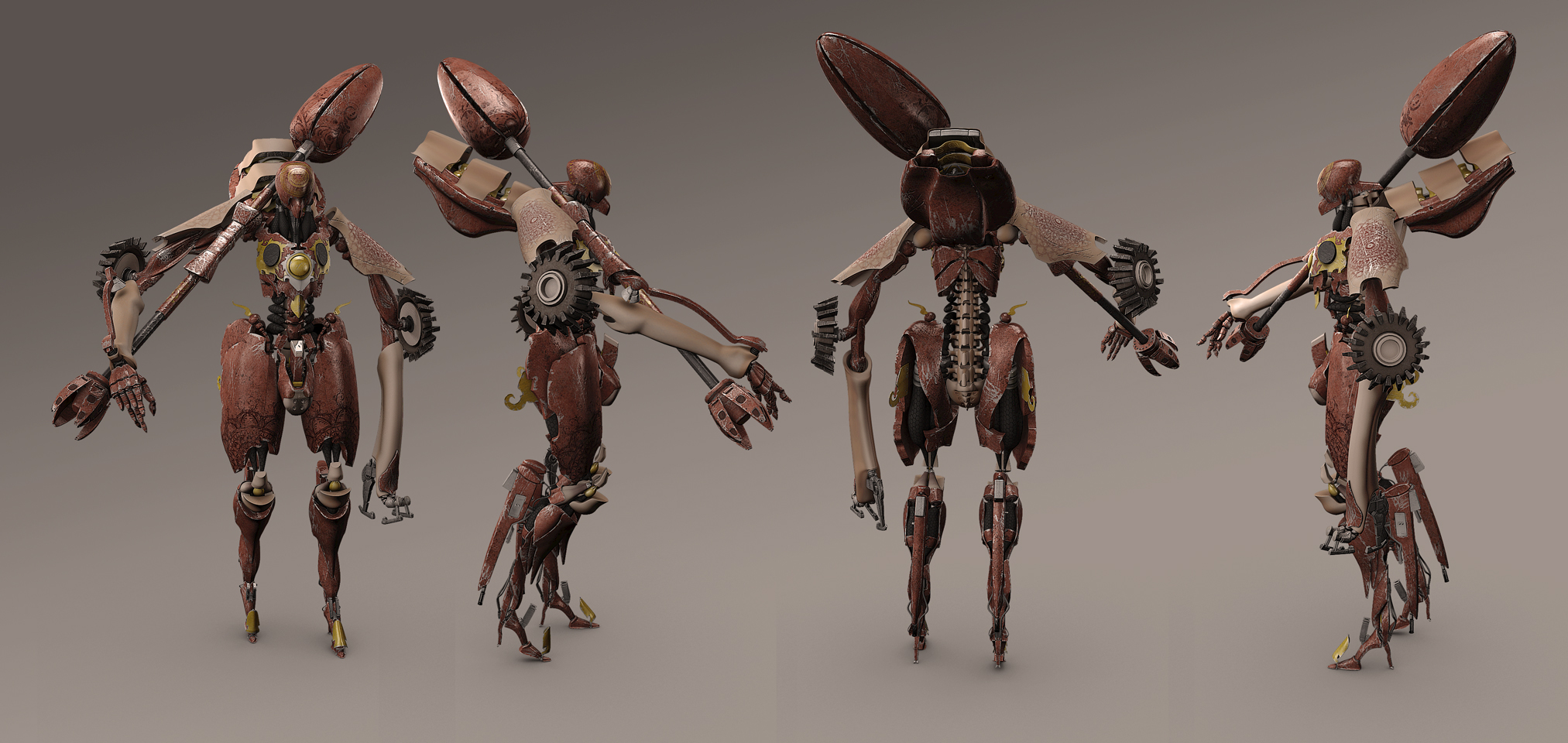 No en serio, la mezcla de orgánico y inorgánico, es de lo más chungo, tienes que mezclar el Smooth con el modelado es quematizado, para que precisamente cuando suavice quede bien y tal, un trabajo alucinante, ese Illustrator que tomas de referencia es también cosa mala, añadido a favoritos, para odiarlo mejor.
