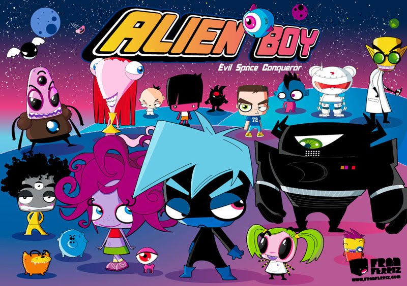 Hola. Os quiero presentar a alienboy. Fue un trabajo realizado para Nickelodeon hace ahora casi dos años. Por motivos de planificación de la cadena la serie no llegó a producirse, pero el trabajo quedó hecho y ahora puedo enseñar parte del trabajo realizado.
