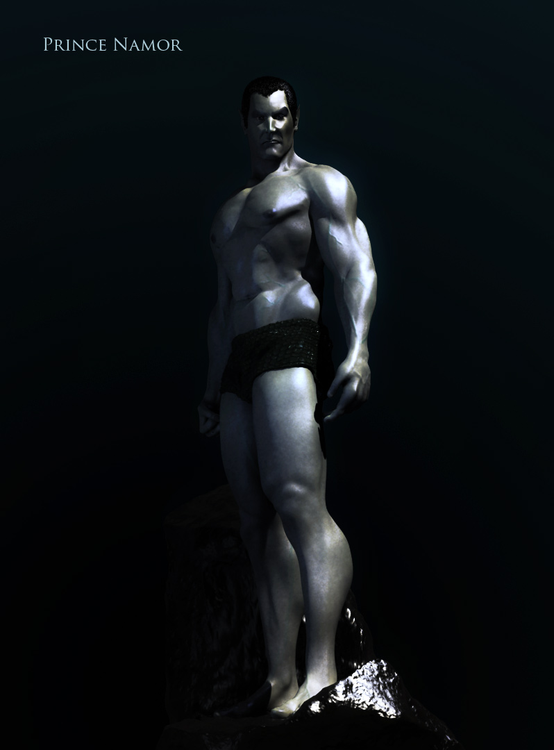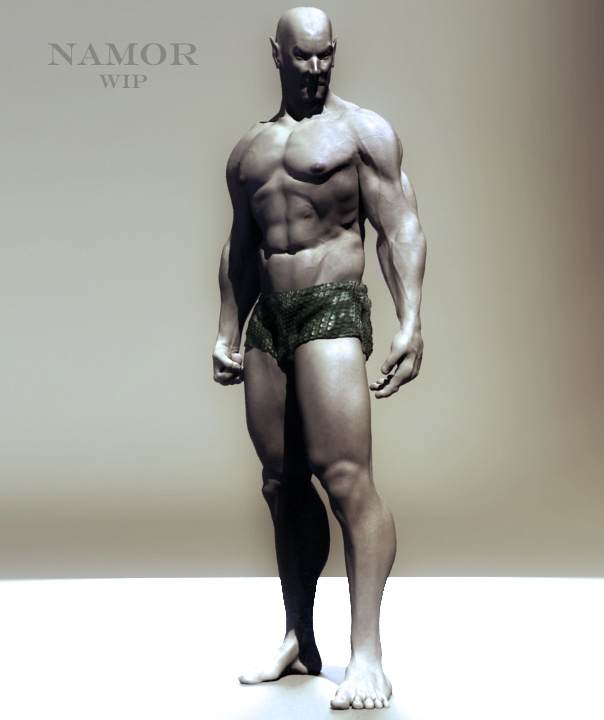 Hay varios dibujos de namor, yo me inclino por el estilo de alex Ross que tiende hacia el realismo, de todas formas, le he quitado volumen en este render para hacer que se parezca más, así que, a ver cómo lo ves ahora Tony.