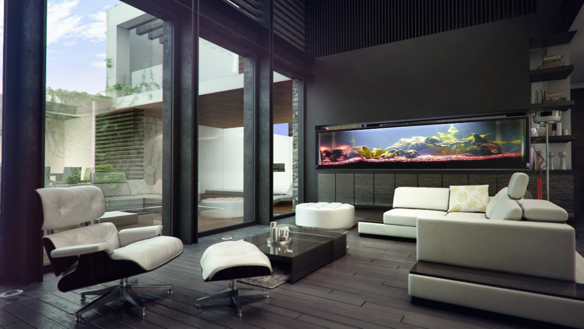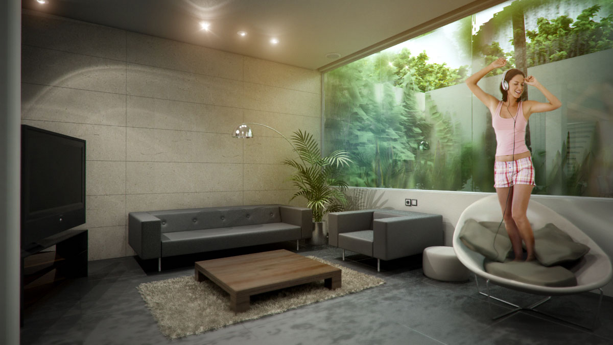 Hola qué tal, estas, me gusta el concepto que tienes y la forma en la que usas la iluminación, pero es verdad que respecto a algunas texturas falta algo para que sea hiperrealista, los cojines del sofá dónde está la chica escuchando música parecen de plastilina y también es verdad que con algo más de Bump ganaría mucho algunos de tus materiales, míratelo. Por otro lado, me encanta el render del salón con la pecera. Buen trabajo.