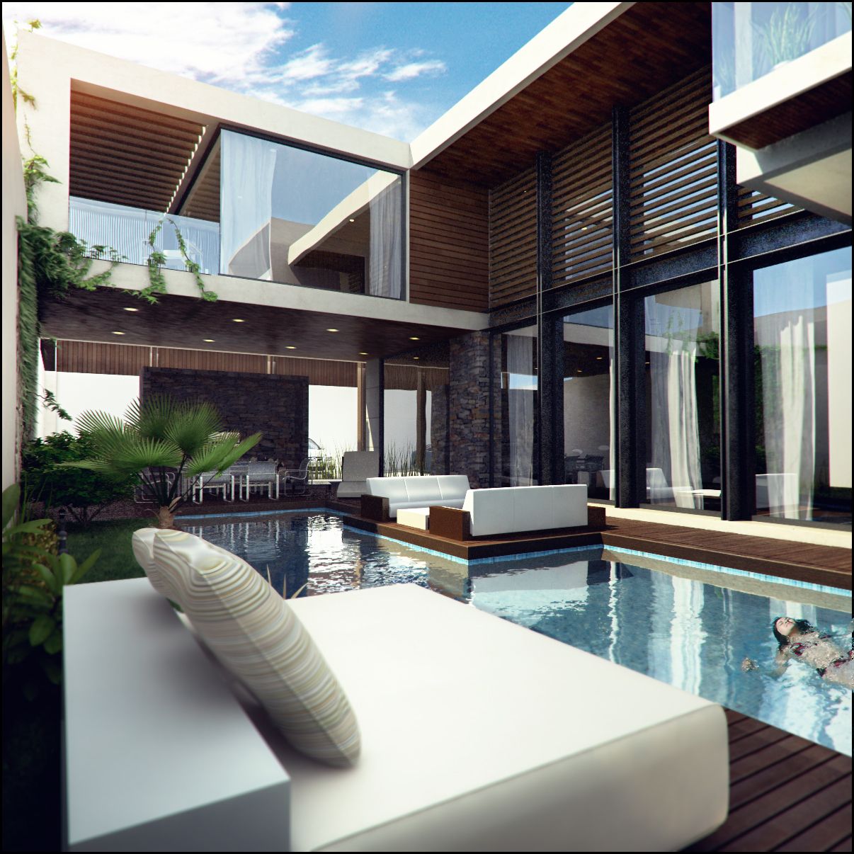 Hermanoa, como una crítica te digo que: más o menos bien, más menos que más. Me voy a enfocar a tu primer render que publicas, estoy de acuerdo que sabes que integración de escalas humanas no la dominas, intenta escalarla y adaptar la más al entorno, y les faltan sombras a tus escalas.