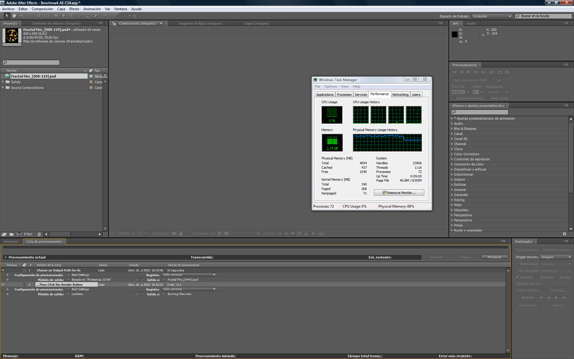 Prueba render para After Effects cs4 benchmarks escena de brian maffitt