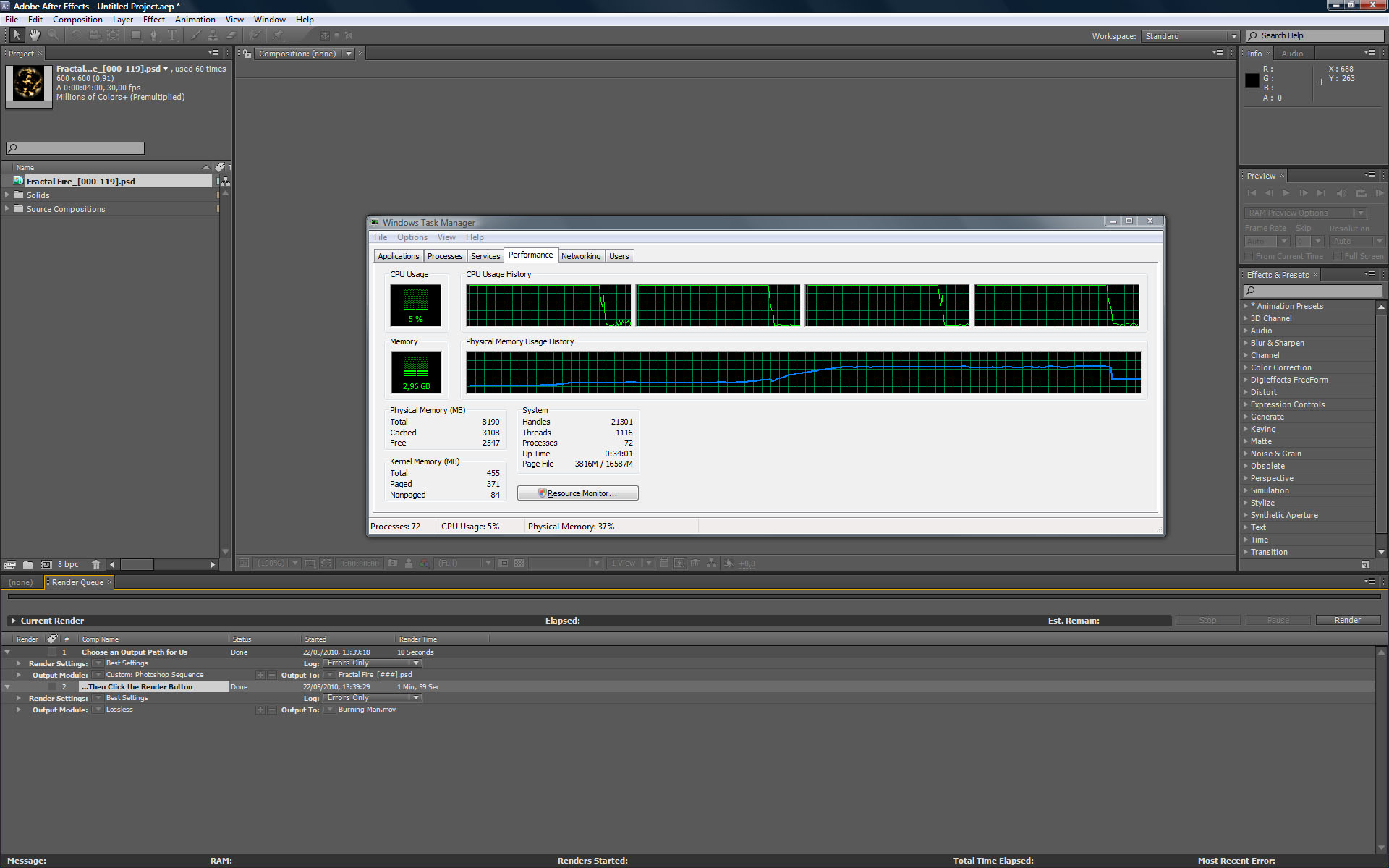 Bueno señores, queda demostrado, Windows 7 64 contra el OSX en After Effects cs5. La versión Windows barre por completo.
