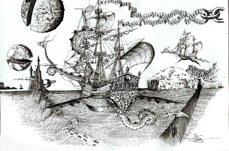 Una de a bolígrafo (bic, of course) sacada en la costa brava. Lo que iba a ser una placida clase de paisajismo se convirtió en una monumental pirada de olla. ¿Qué extraños efluvios de locura flotaran por aquellos parajes? Saludos.