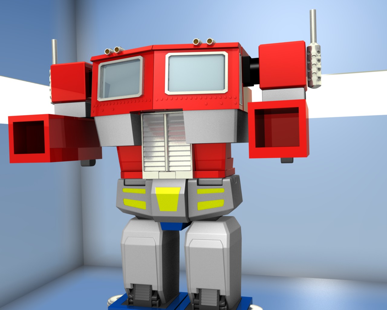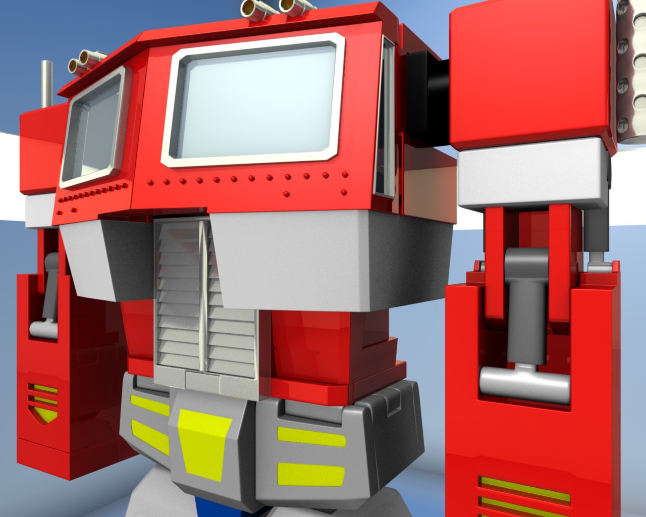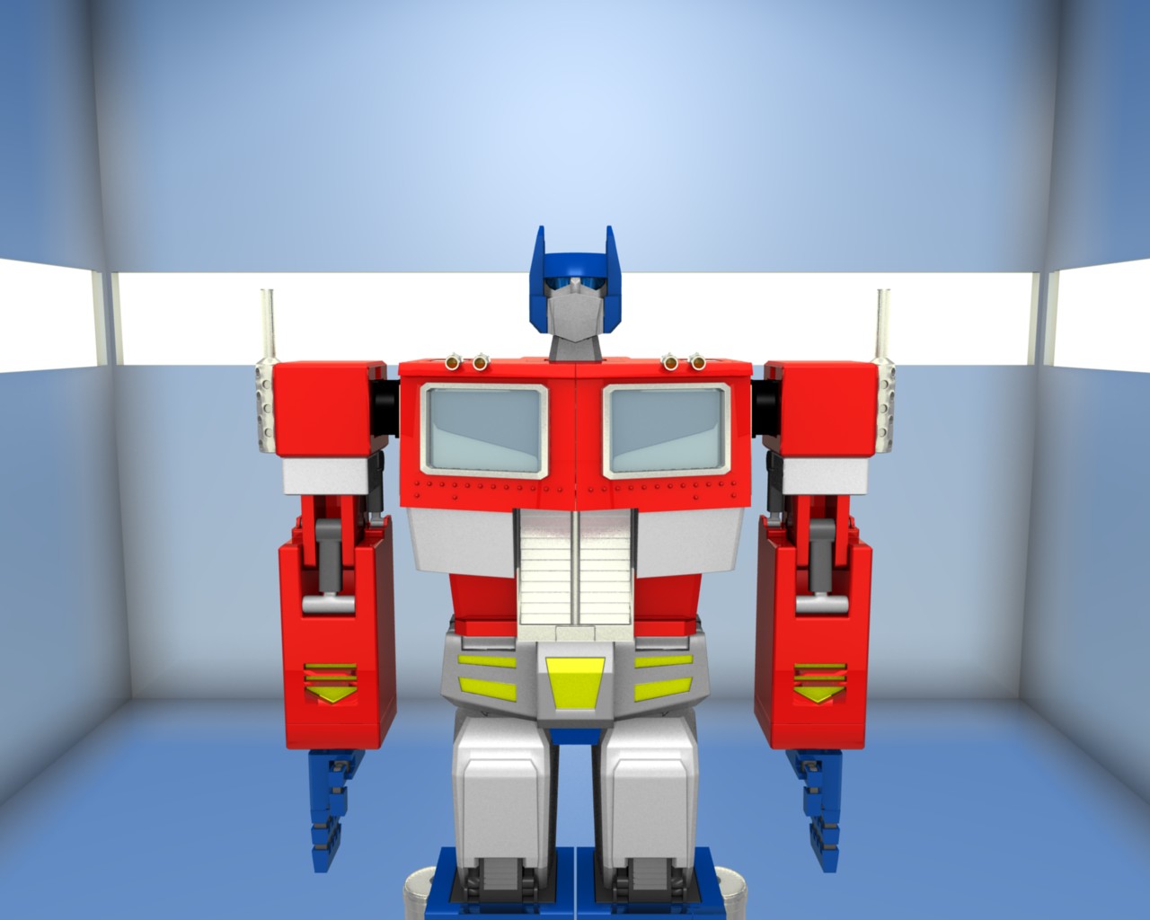 Bueno, he seguido con el modelado de Optimus prime y junto al modelado que he estado haciendo le hice también unas insignificantes mejoras como cambiar los remaches que, ahora si parecen remaches y hacer más marcado el adorno amarillo del pubis. Espero les guste.