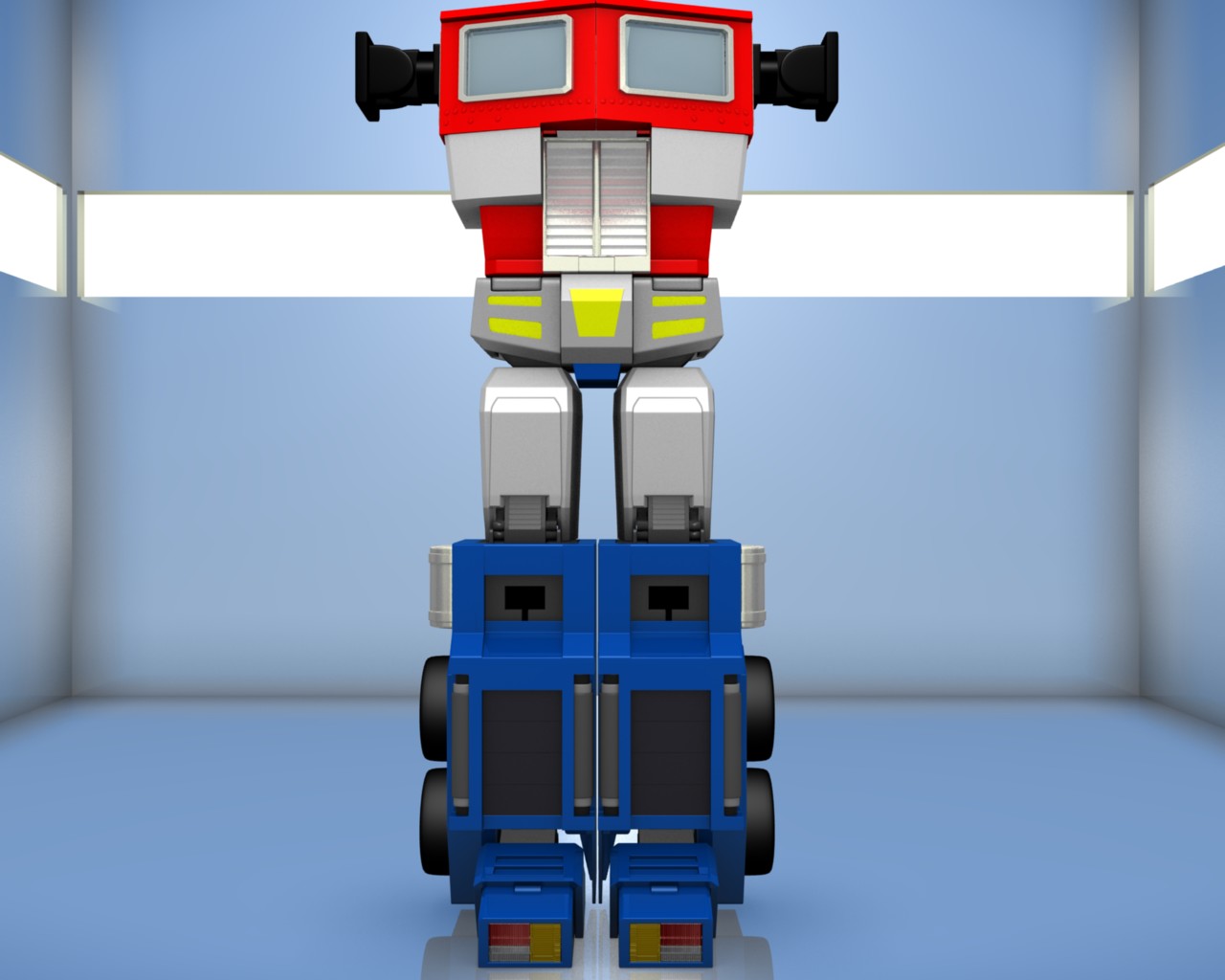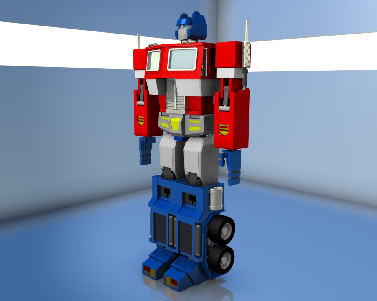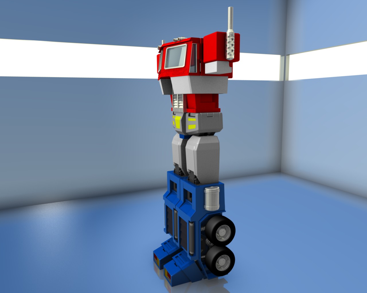 Bueno, he seguido con el modelado de Optimus prime y junto al modelado que he estado haciendo le hice también unas insignificantes mejoras como cambiar los remaches que, ahora si parecen remaches y hacer más marcado el adorno amarillo del pubis. Espero les guste.