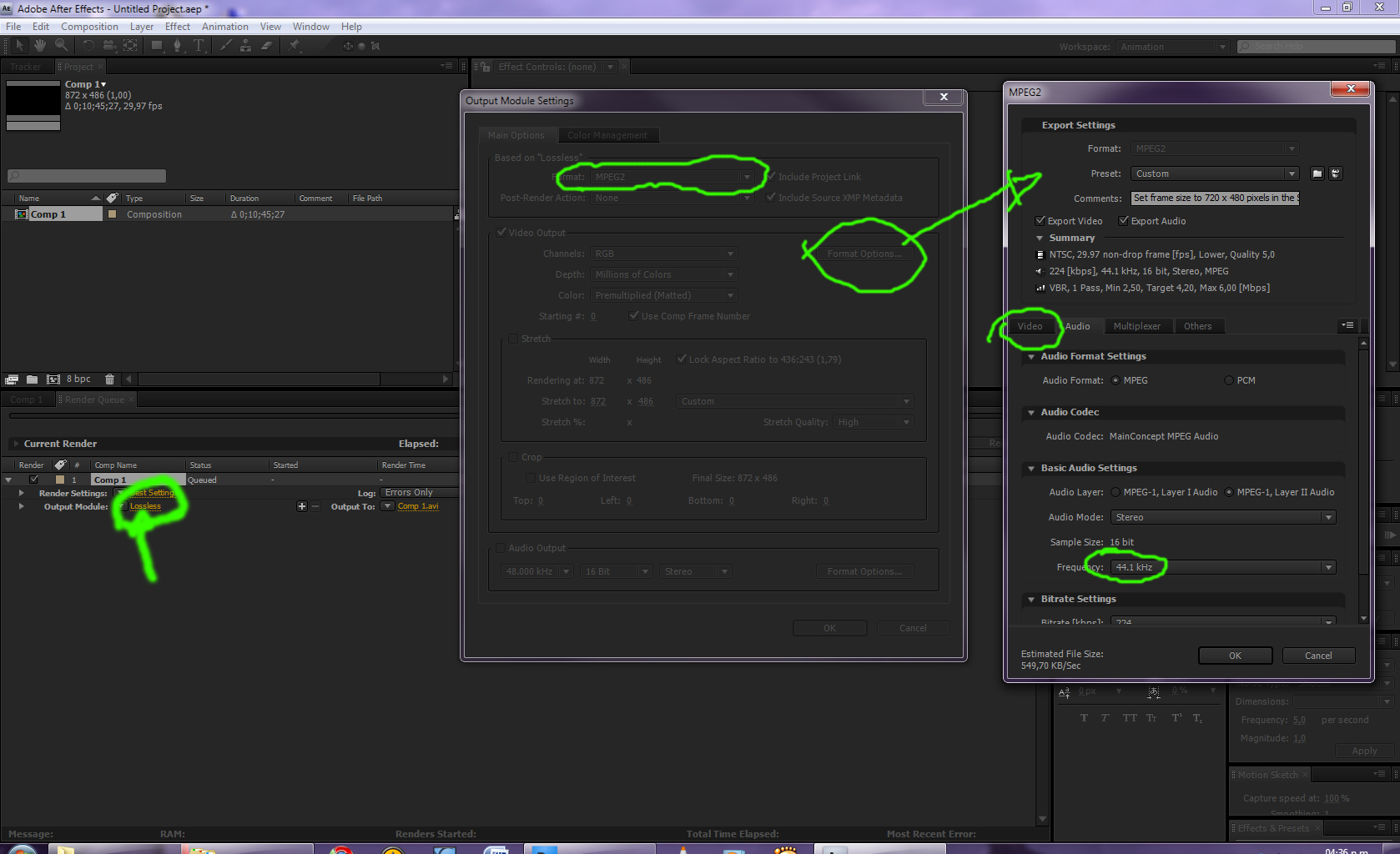 Hola. Intenta exportar así. Dale en composición crear película, en formato lo cambias a mpeg 2, fíjate después en opciones de formato que cambies el video en la calidad a 5, normalmente cuando pones mpeg 2 sale en 4 la calidad, después cambia el setting de audio a 44.100.