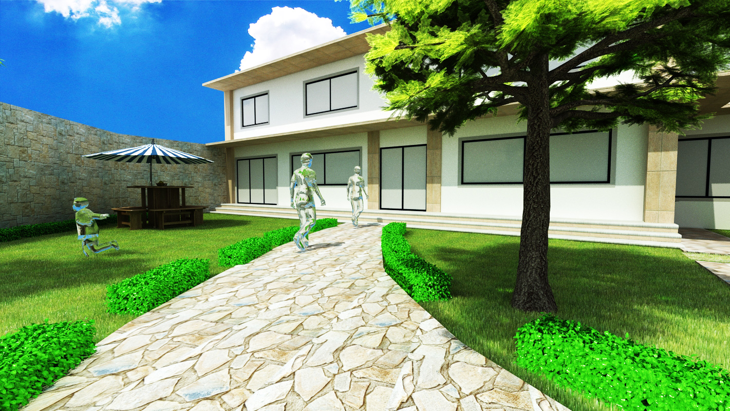 Bueno vamos por partes. Tu exterior, está todo demasiado saturado, los cristales son totalmente opacos y la iluminación te queda mucho por aprender, por otro lado, me encanta tu césped. En tus interiores la iluminación se ve bastante mejor, pero, esas escaleras parecen que están en suspensión, quedaría mejor si pusieras algún tipo de sujeción. Seguramente otros compañeros te dirán algún consejo mejor que el mío, tampoco me quiero pasar mucho contigo ya que yo estoy aprendiendo y no soy ningún profesional en esto de la infografía. Un saludo.
