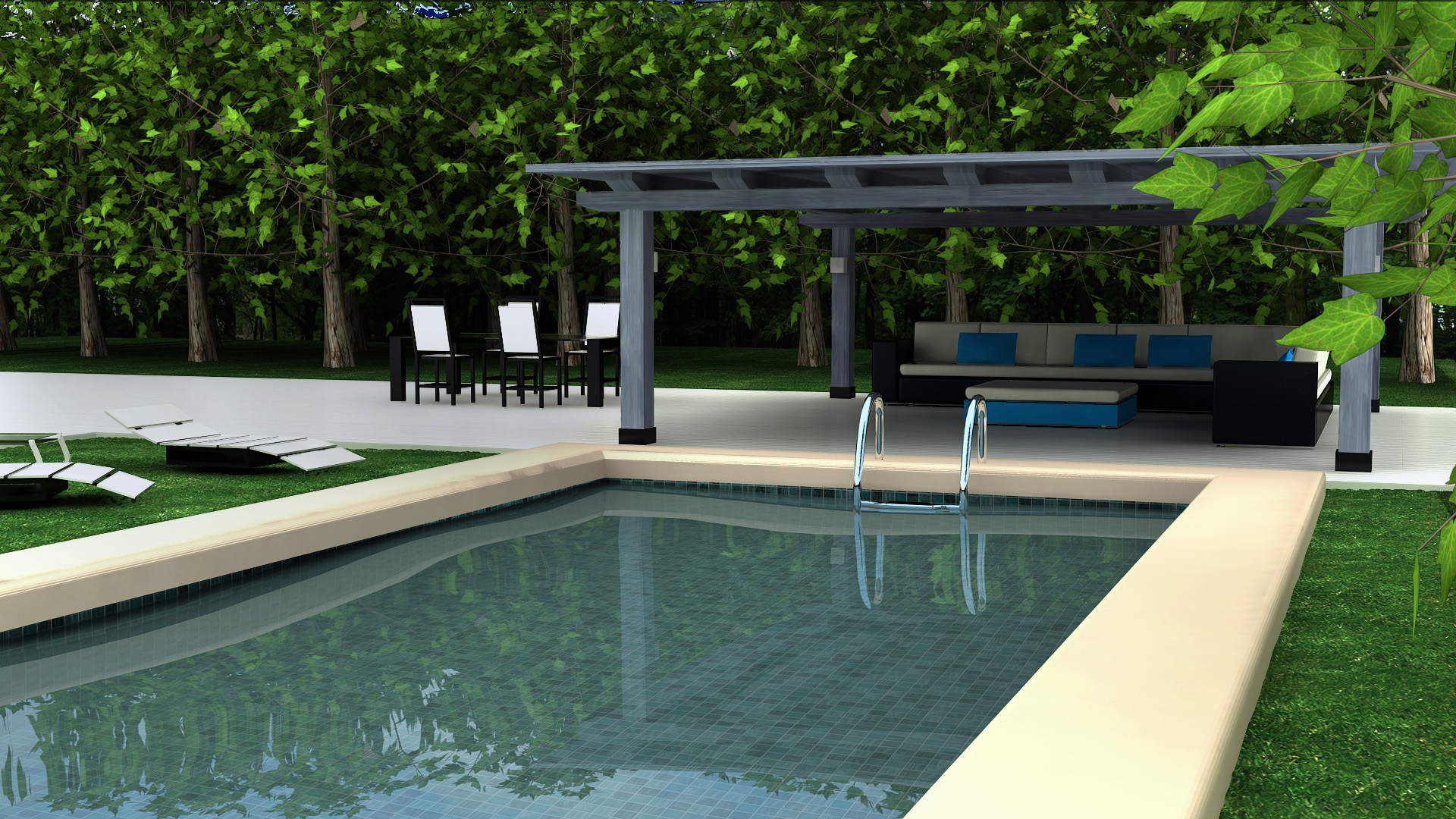 Las columnas y los travesaños de madera de la pérgola, honestamente, que sean grises, yo les pondría una buena madera y con un correcto uwv mapp y el Bump correspondiente.
