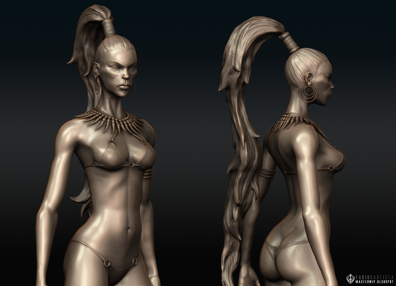 Hola. Este fue un modelo que realicé para el último sculpting challenge de 3dtotal. El reto consistía en hacer una guerrera Amazona y quise hacer una con figura esbelta que siguiera un poco el estilo de Scott Campbell.