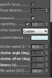 He usado para el render, Vray 1.50 service pack 4.colocado una Vray Sun, sin skylight, y una Physical Camera, con los parámetros que también dejo más abajo.