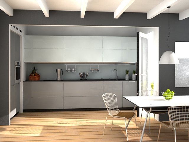 Abrir semejantes cajones (los de arriba, más) con solo las yemas de los dedos, tiene que ser sublime. El render muy chulo, como cocina, no.