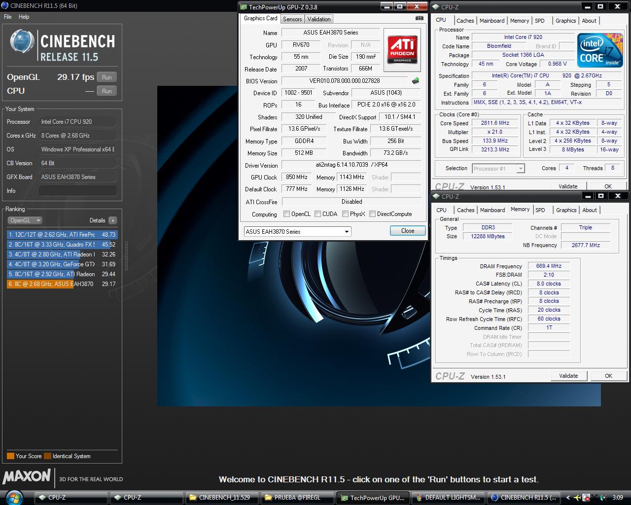 Mis pruebas con una Asus 3870 y Windows XP 64: Drivers 9.8 - 29.17 fps. Drivers 10.4a - 42.55fps. Y no solo en Cinebench 11.5 se nota una clara mejora en la prueba de OpenGL por lo que lo llevo probado en 3dsmax se nota la gráfica claramente más suelta en escenas donde antes renqueaba o tenía que ocultar bloques, hacer cajas, ahora va bastante suelta incluso con escenas bastante grandes con lo que sin duda un sorpresa estos drivers para todos los que nos dedicamos a esto.