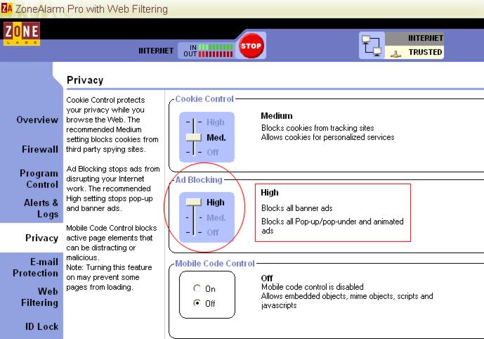 Por cierto, buen cortafuegos, aunque te recomendaría que desactivaras todas las opciones de filtrado de web y en su lugar usaras un navegador responsable (Mozilla, Firebird).