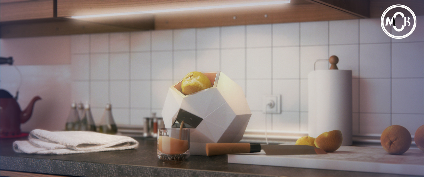 Bueno amigo, tu render va por buen camino, pero hay detalles que mejorar. El zumo, parece plastilina, está demasiado desenfocado, créeme llevo años haciendo fotografías y no saldría tan desenfocado a esa distancia los objetos de detrás. Por otro lado, me encanta ese trapo de cocina te ha quedado genial. Un saludo.