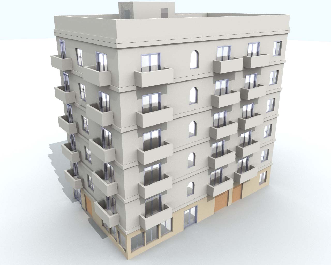 Aleatoriedad, es lo que hace que una arquitectura más o menos realista, cuando quieres hacer una arquitectura realista lo menos importante es el edificio y lo más importante es el entorno, así que, mete gente, nada de fotografías, gente 3d, coches también 3d, mobiliario urbano, un quiosco un par de árboles que no sean idénticos y que no sean fotografía, desenfoques, profundidad de campo, en el edificio, aunque sea nuevo, a los edificios nuevos también les llueve y esas cosas, así que, un poco de merda sobre todo en la parte que se una con el suelo, también las ventanas, todo dios las hace cerradas iguales, vaya, una persiana, unas cortinas diferentes y no todos con cortinas también hay estores claro, una ventana abierta otra cerrad, a, las persianas lo mismo, un cartel de nunca más, otro de boda no, y esas cosas.
