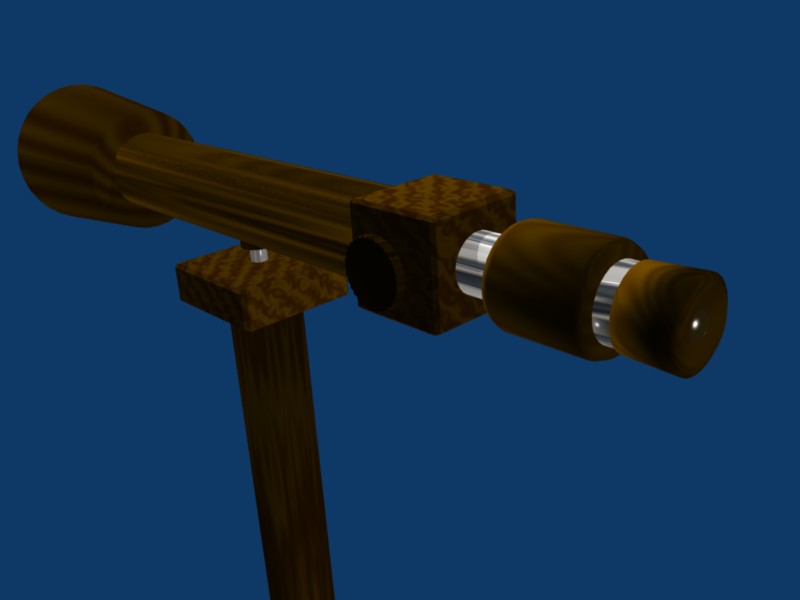 Gracias por todo comentario. Realmente son figuras básicas, por lo tanto, una construcción simple. Lo hice para desviarme un poco de Juana de Arco, que me da mucho trabajo, y los echamenes. Pero ahora ya tengo tiempo y subiré mis avances en ese modelado. Cada pieza tiene textura independiente, pero son iguales, con lo que no se nota. Ahora, dejaré un poco apartado al telescopio para centrarme de lleno con Juana de Arco (alguien sabe por que Blender no deja hacer polígonos de más de 4 lados (pentágonos, hexágonos.)?) gracias y un saludo.
