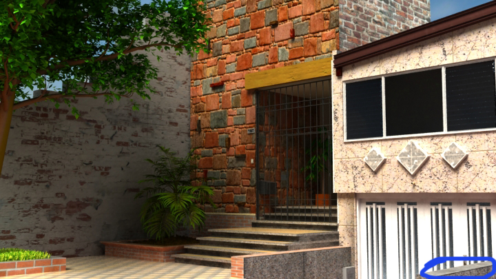 1) el área resaltada es exactamente el mismo material que tiene el muro de en frente, pero no sé por qué se ve borrosa, que puedo hacer para solucionarlo?